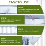 Extra Wide Heavy Duty Curtain Pleat Tape and Stainless 4 Prongs Hooks for Drapes, Vintage Style for sheer lined or blackout curtains
