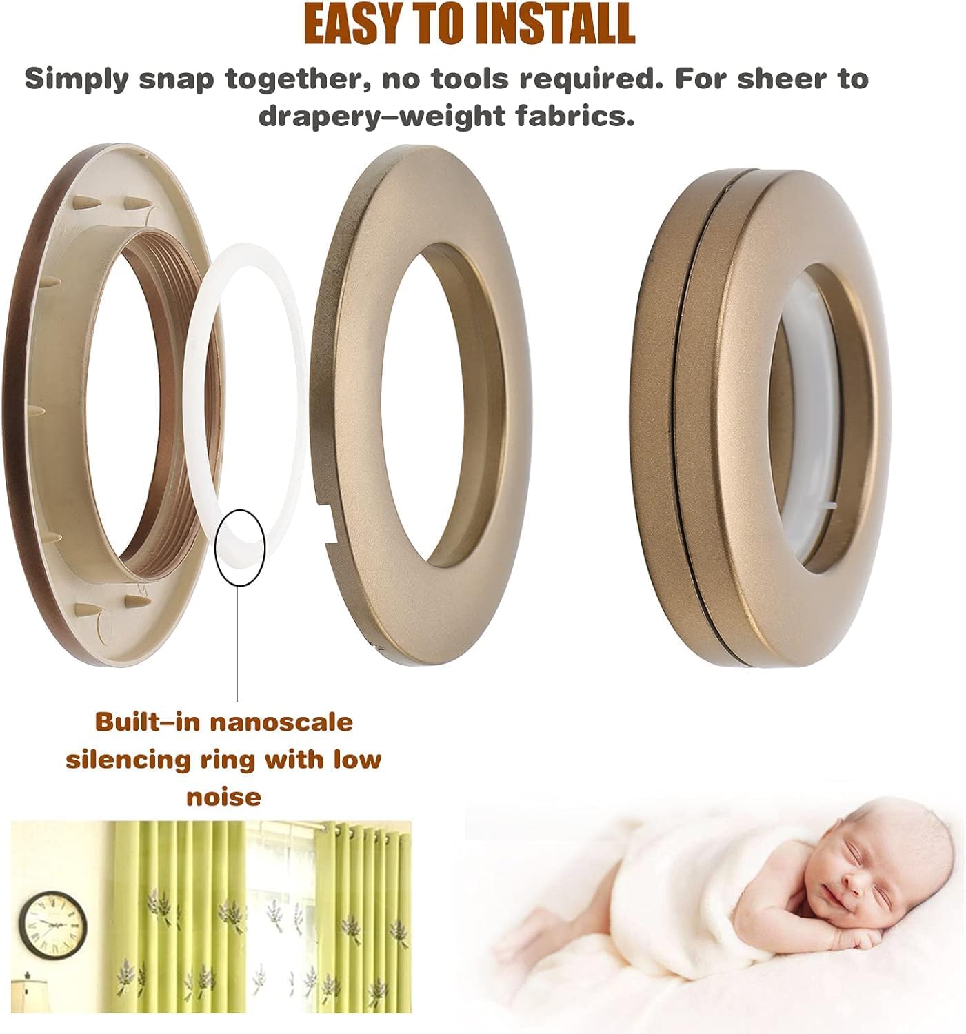 - 【Mute & Smooth】The curtain eyelet rings have a built-in nanoscale silencing ring, to slide more smoothly and quietly on the curtain rod. which can provide you a comfortable living environment.