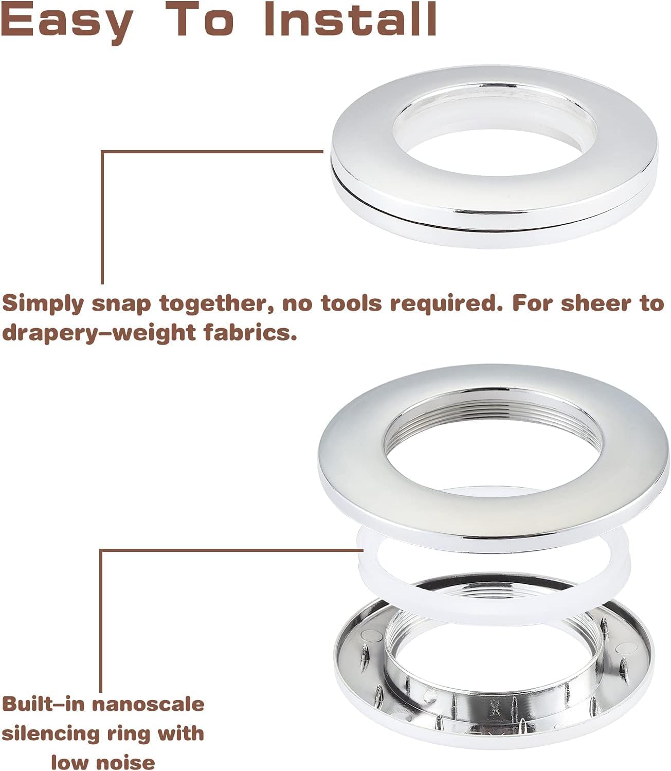 - 【Mute & Smooth】The curtain eyelet rings have a built-in nanoscale silencing ring, to slide more smoothly and quietly on the curtain rod. which can provide you a comfortable living environment.