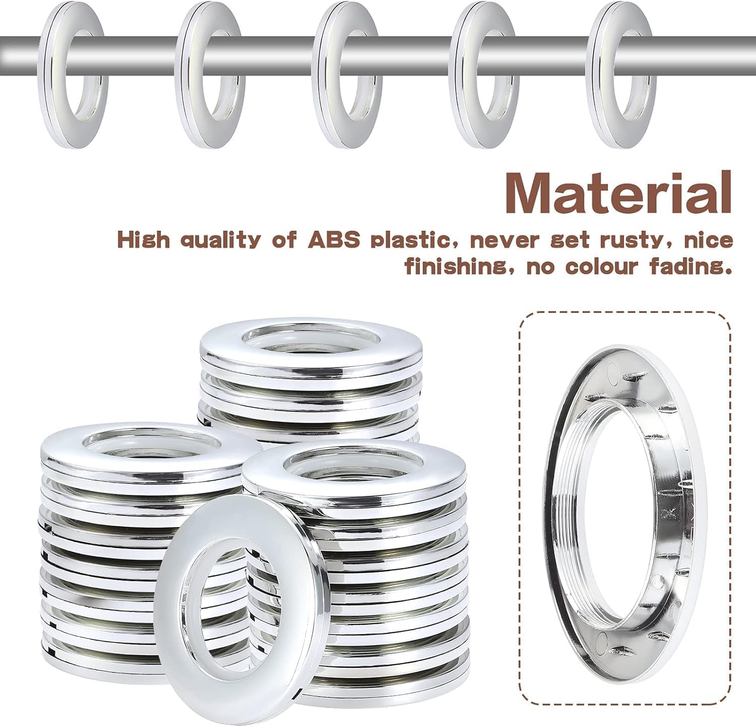 Pack of 20 Shiny Silver nano-scale noise cancelling curtain Grommets Round Plastic Curtain Eyelet Rings for Window,Sheer, Shower or Locker Room Door Curtains
